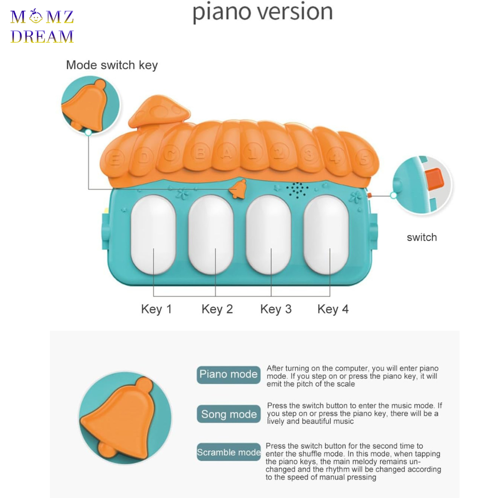 3- بيانو أوضاع السحب البيانو مزود بـ 4 مفاتيح موسيقية مضيئة وأضواء خفيفة. يحتوي على 4 أوضاع: مقياس موسيقي، أغاني الأطفال، عزف البيانو والتنويم. سيستمتع الأطفال بها عندما يضربون ويركلون مفاتيح البيانو وسيكافأون بألحان جميلة وأضواء وامضة ناعمة. تم تصميم اللوحة متعددة الوظائف على الظهر بخرز سحب وتروس، وهي مفيدة لتطوير المهارات الحركية الدقيقة للطفل والتنسيق بين اليد والعين. يمكن إزالة مركز أنشطة البيانو أثناء اللعب.