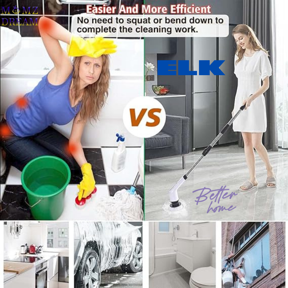 فرشاة تنظيف كهربائية منزلية من الك ELK ، فرشاة تنظيف كهربائية دوارة مع مقبض تمديد، فرشاة تنظيف 9 في 1، فرشاة كهربائية للتنظيف، فرشاة تنظيف كهربائية.