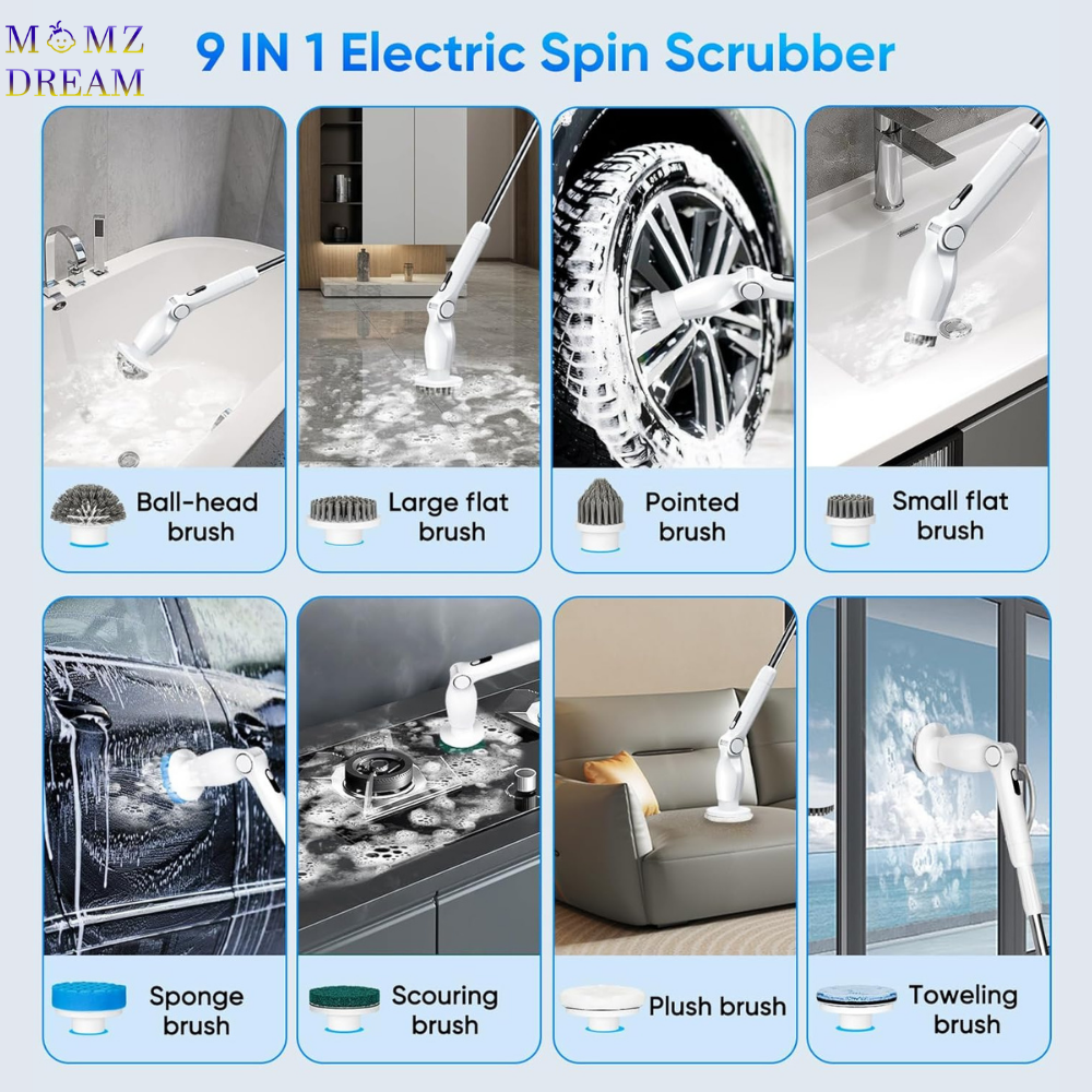 4- فرشاة كهربائية 9 في 1 للتنظيف: تحتوي فرشاة التنظيف الكهربائية على 9 رؤوس فرشاة قابلة للتبديل لمناطق مختلفة، فرش مسطحة للبلاط والأرضيات وأحواض الاستحمام والمراحيض، وفرشاة زاوية للمناطق التي يصعب الوصول إليها، وفرشاة كروية للأحواض وأحواض الاستحمام و4 أقمشة من المايكروفايبر للأرضيات الخشبية والأثاث والنوافذ والسيارات. شعيرات الفرشاة ناعمة ولا تتساقط وتسمح بتنظيف لطيف ولكن شامل دون خدش الأسطح.