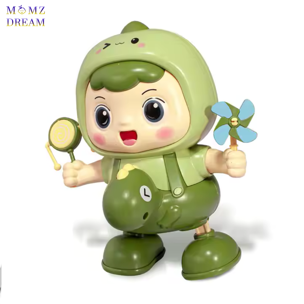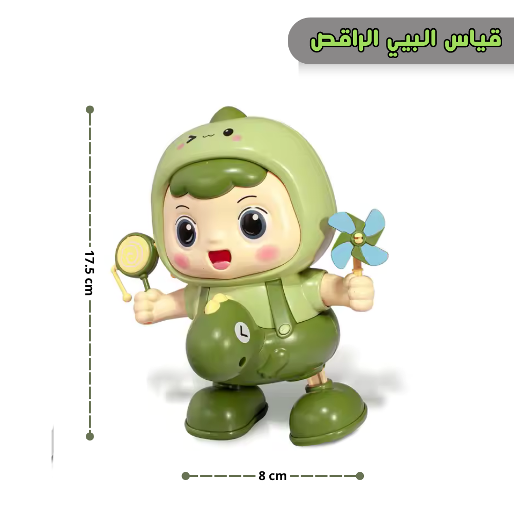 ويتميز بحركات جذابة بما في ذلك المشي التي ستأسر عقول الأطفال ، و يرتدي هذا البيبي التفاعلي الرائع ملابس خضراء ساحرة وحذاء اخضر ، مناسبة لكل من الأولاد والبنات، من المؤكد أن رفيق البيبي الراقص هذا سيصبح إضافة ثمينة لمجموعة ألعاب أي طفل