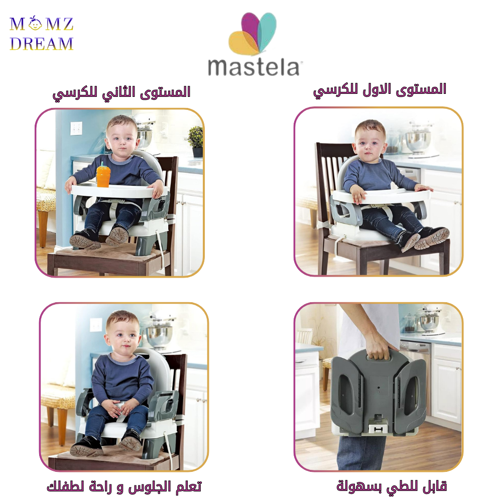 تعتبر التغذية الجيدة إحدى الأمور الهامة في تطور الطفل، ونظراً لاهتمام ما ستيلا بصحة رضيعك ونموه السليم فقد قامت بتطوير هذا الكرسي المرن. يمكن وضع كرسي الطعام على الأرض أو فوق كرسي، كما تتمتع الصينية القابلة للإزالة بثلاثة وضعيات للتعديل. يمكنك أخذ الكرسي العملي للغاية إلى المطعم أو الشاطئ أو منزل صديقتك حيث أنه خفيف ومضغوط وسهل الحمل