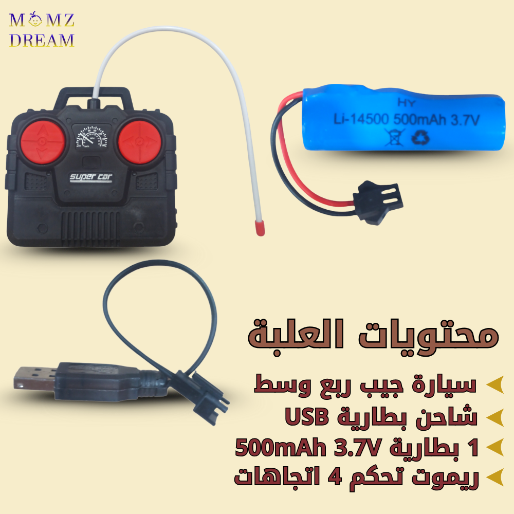 سيارة جيب ربع وسط للاطفال من مودل كار، بريموت تحكم وسيارة قابله للشحن بـــ 1 بطاريات سعة AA500mAh 3.7V.